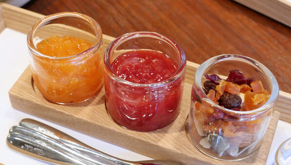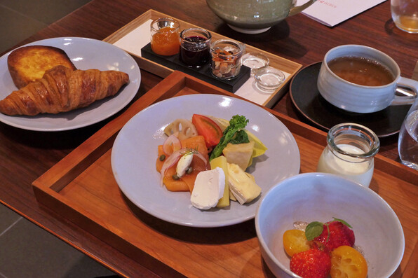 「KYOTO BISTRO」2階のスペースで、いつもは「ザ リビングルーム」で供されるアフタヌーンティーコースの、スペシャルヴァージョンを出していただきました。