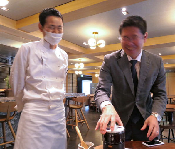 パーク ハイアット 京都さんでアフタヌーンティという名前のコース料理、ノエル仕様で贅沢な食材使い、さらにひと皿ごとにお茶がペアリングされて、それだけで実に楽しいのに、食後にまさかの新しい展開が用意されていたのでした。