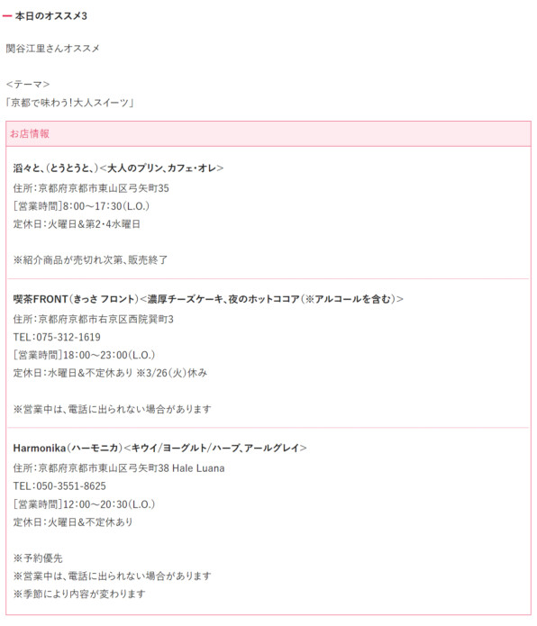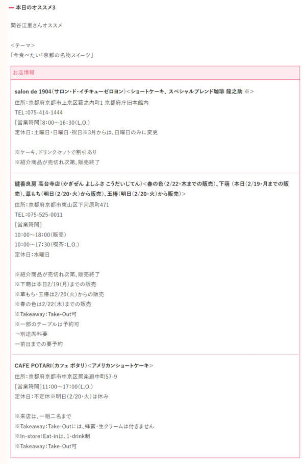 収録にご協力いただいた3店舗さんに御礼申し上げます。