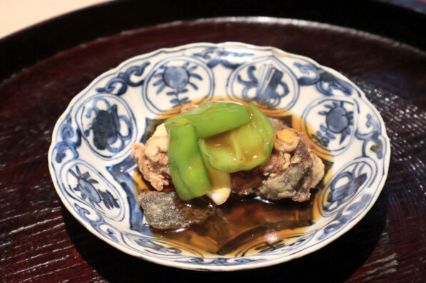 ・子持ち鮎揚げ、万願寺唐辛子射込み
