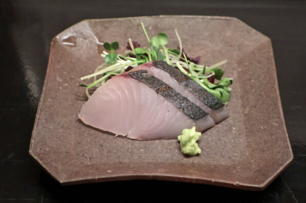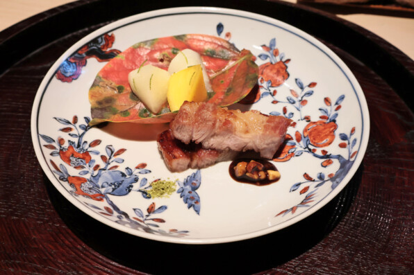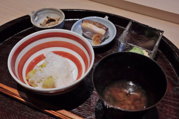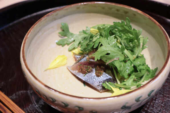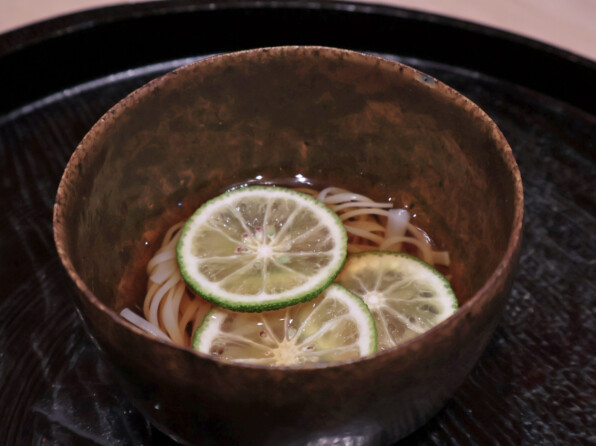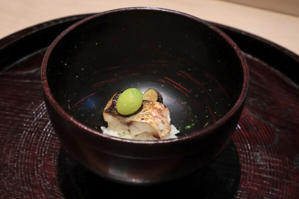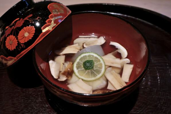 明石鯛 潮仕立て、青森の蕪、松茸、青柚子、すだち。