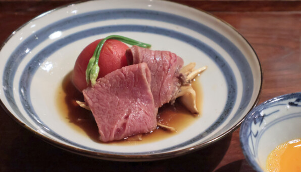 グラスフェッド牛肉のしゃぶしゃぶに、賀茂茄子(揚げてから炊いた)、