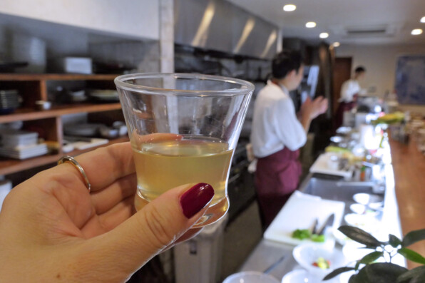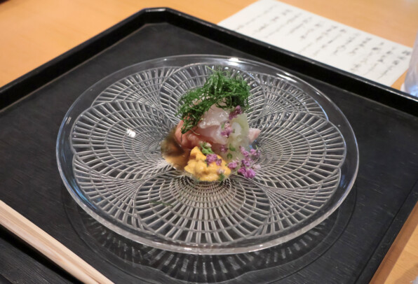 岩手の「赤武 AKABU」を食前酒にひと口いただきお料理スタートです。