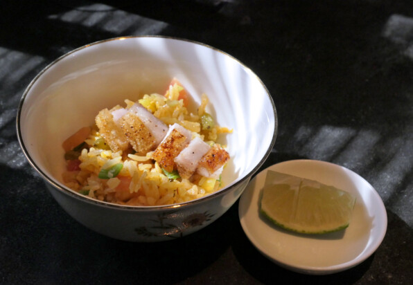 高知の「直七」という、魚に合う柑橘をおろしてはらはらと。