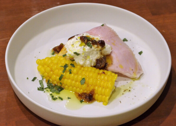 しゃもの温玉、ルイビ豚(LYB豚)の肉味噌。