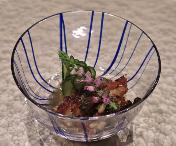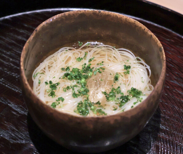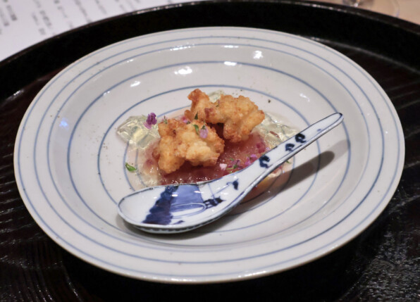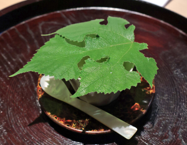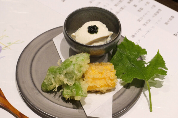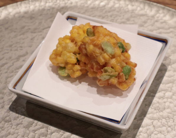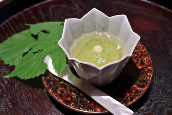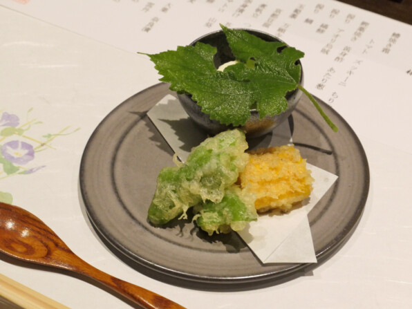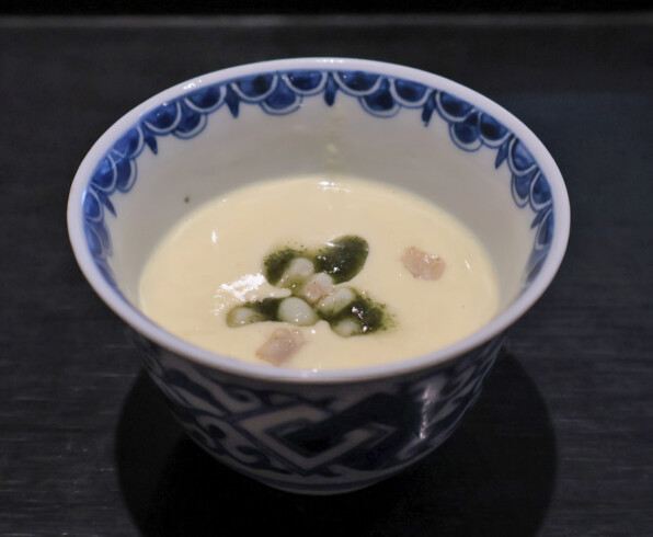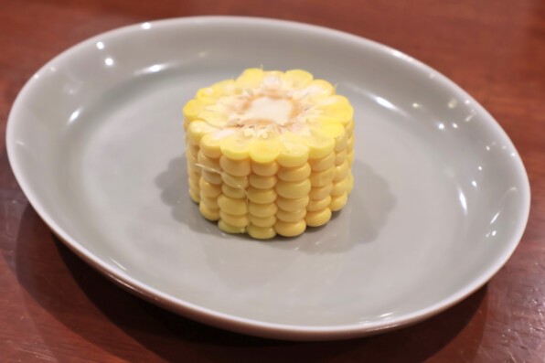 ●こちらは嶽きみのすり流し。上に焼いた白いコーン、風味付けの大葉オイルが粋でした。