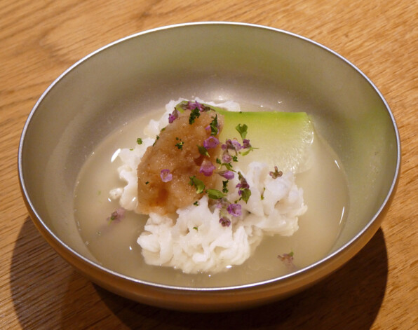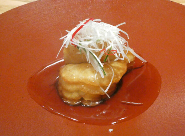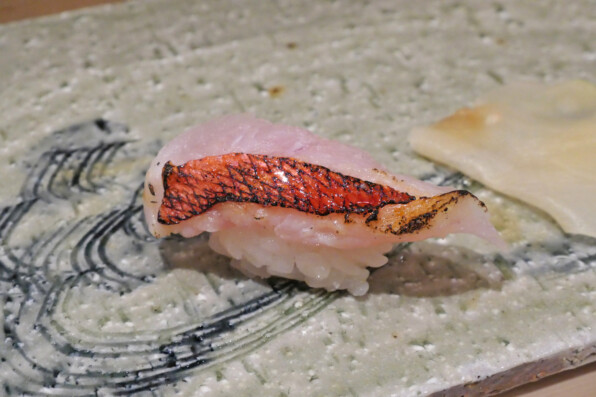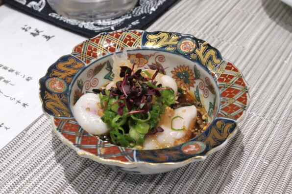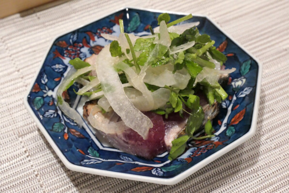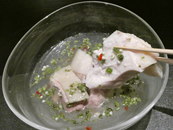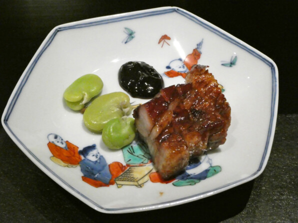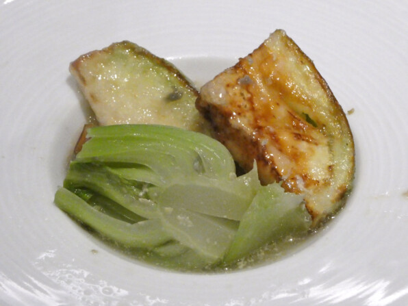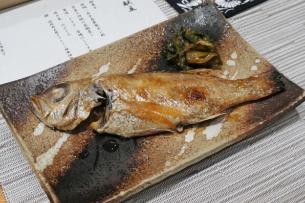 甘鯛、青瓜、焼き湯葉、おかひじき。
