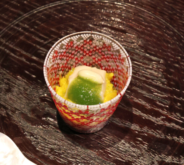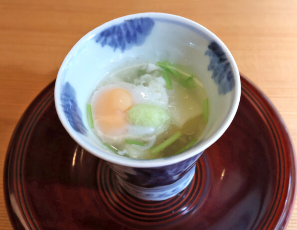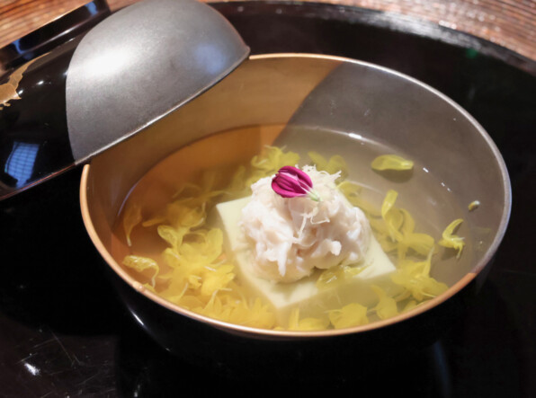 ●毛蟹のしんじょう、枝豆豆腐、もって菊のお椀