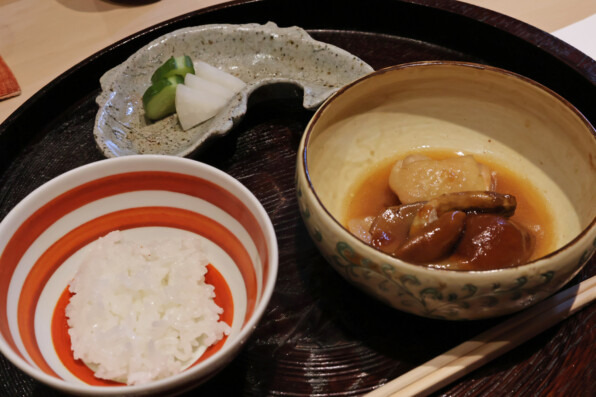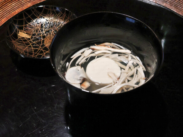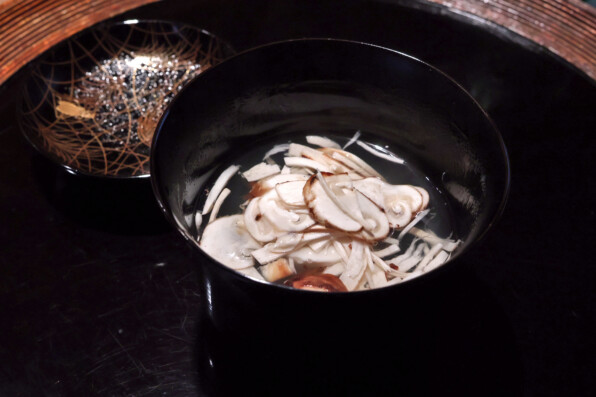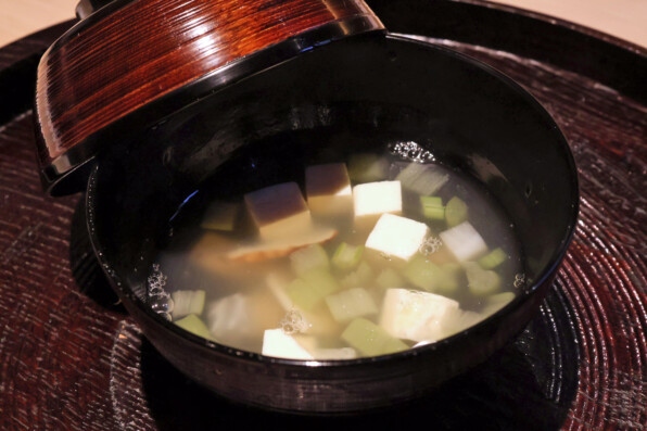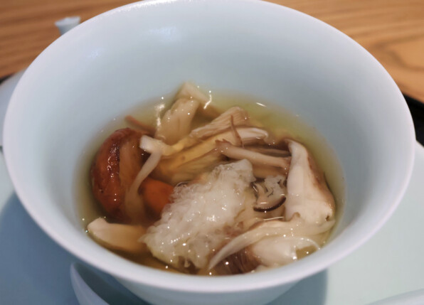 ●小吸物は鱧と松茸のおだしで、松茸と豆腐のお椀。