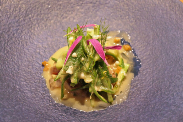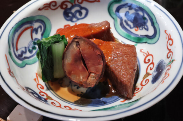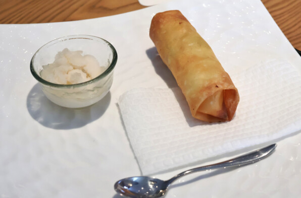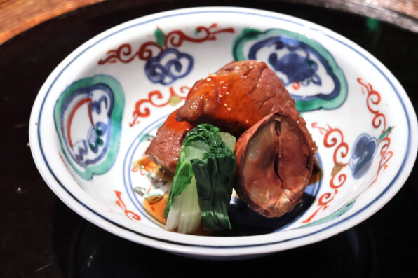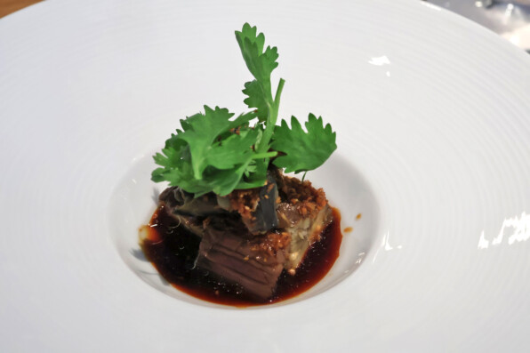 中華の北京ダックのような食べ方が楽しい、粋な一品でした。