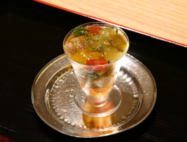 土佐醤油/わかめときゅうりと土佐酢のジュレ。