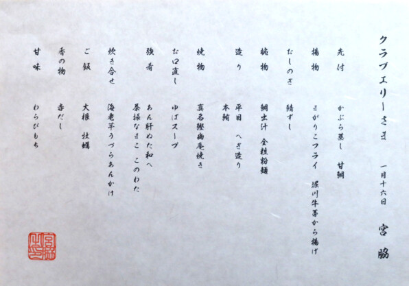 ●献立がこんなにすてきです。後で額装しなければいけません<(_ _)>