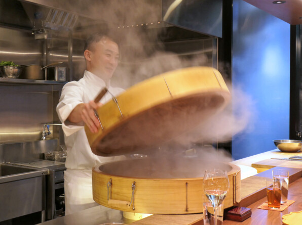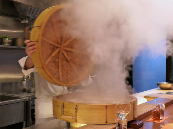 ●ふぐ酒蒸しは、湯気湯気状態で運ばれました。