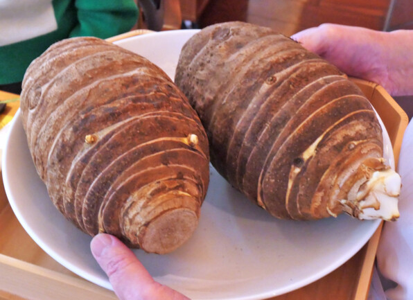 後ろに見えている、スティック状にして立ててあるのは大中寺芋で、