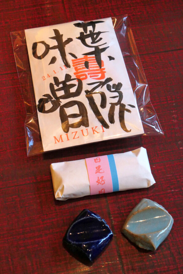 ●お手製アートの他に、葉隠味噌とお箸置きをおみやげにいただきました。