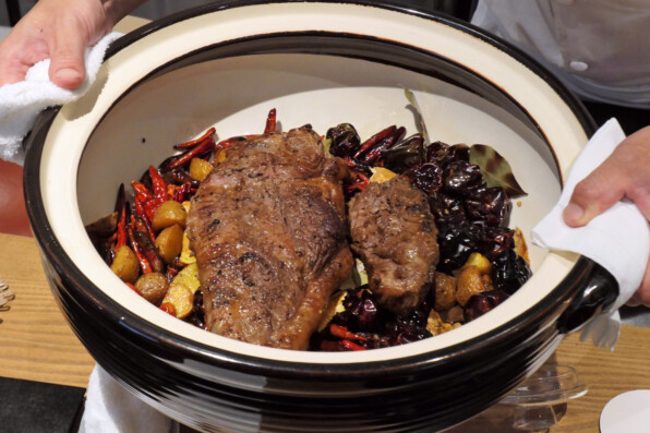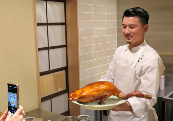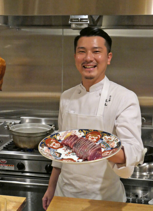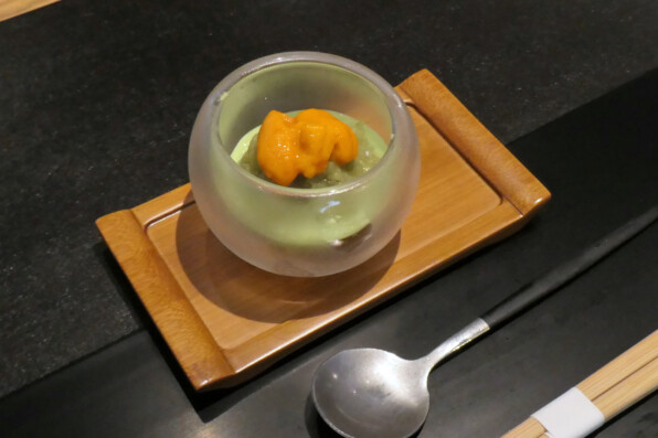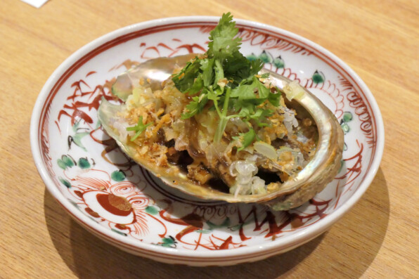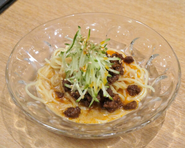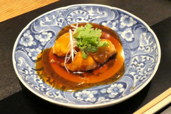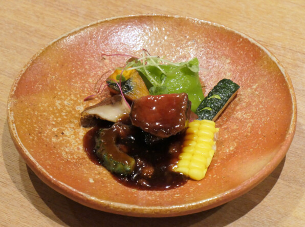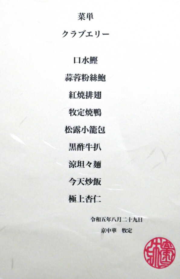 いつもの叉焼炭火焼きも、毛蟹の黄色パプリカガスパチョ風もお造りもお椀もジャージャー麺も鱧の豆鼓炒め(京 静華さんでおなじみ