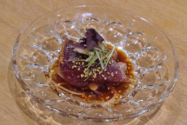 まぐろ。九条ねぎと赤こんにゃくの酢味噌和え。