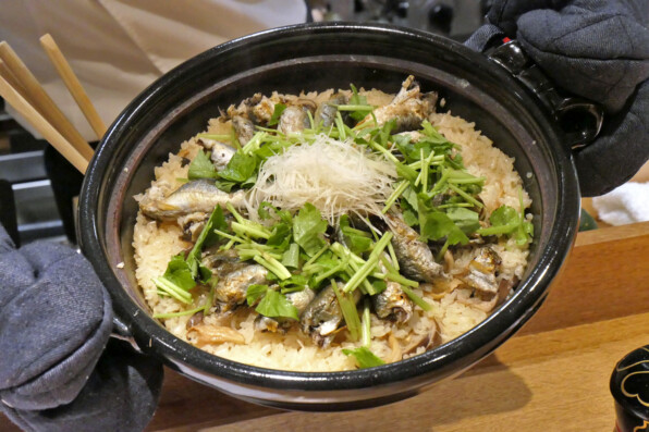 ●鮎と新生姜のご飯、季節感豊かで、満腹なのに際限なく食べたいと思いました。