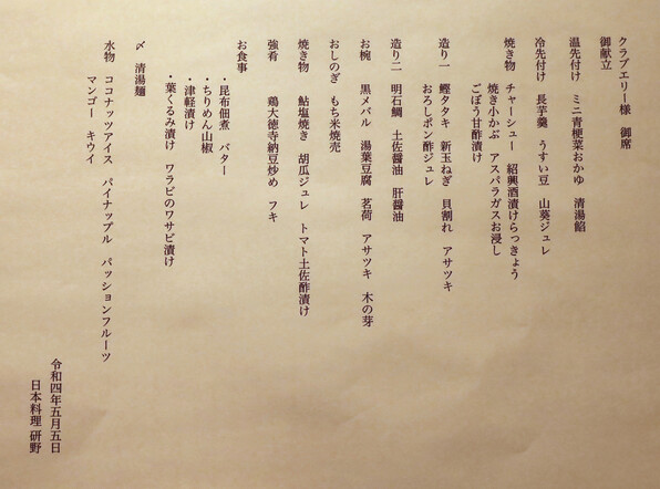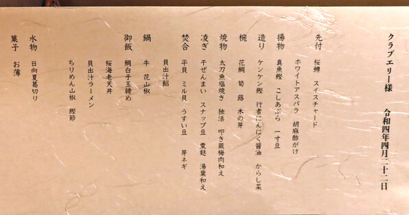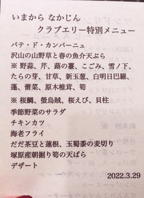 3月下旬に伺ったクラブエリー@「いまから なかじん」さん。