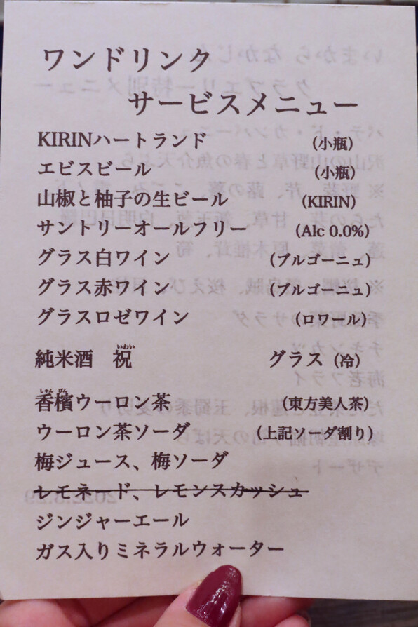 ●つけていただいた1ドリンクはこんなでした。