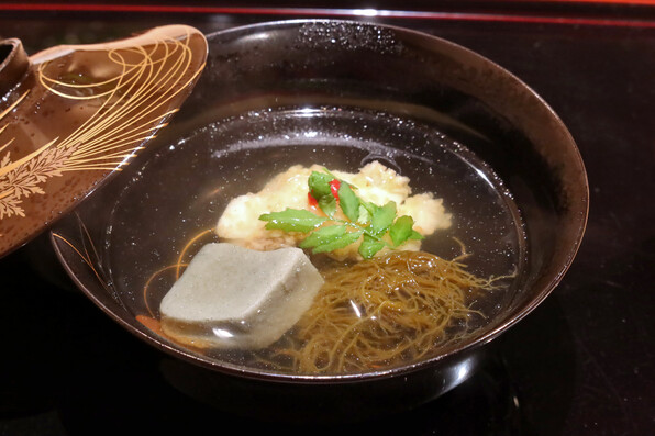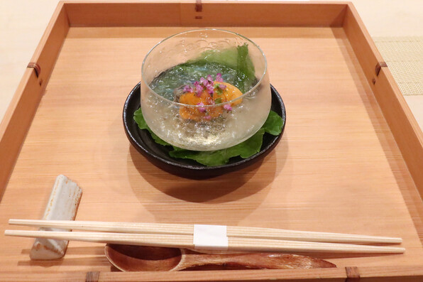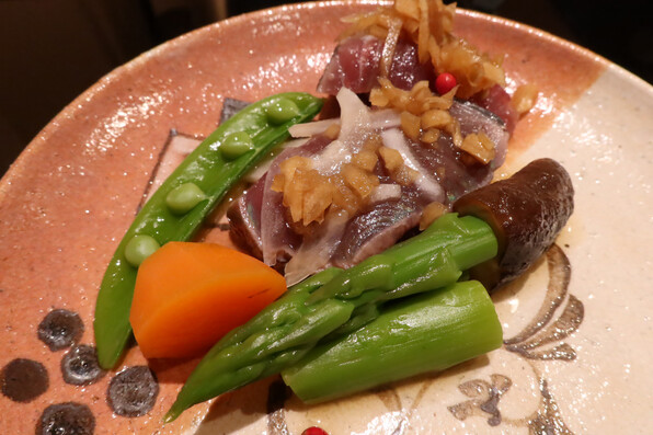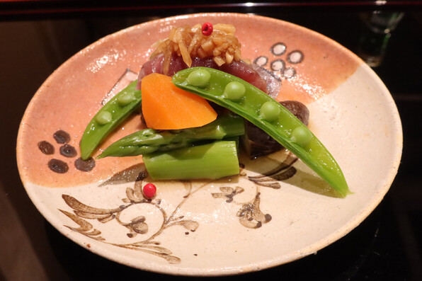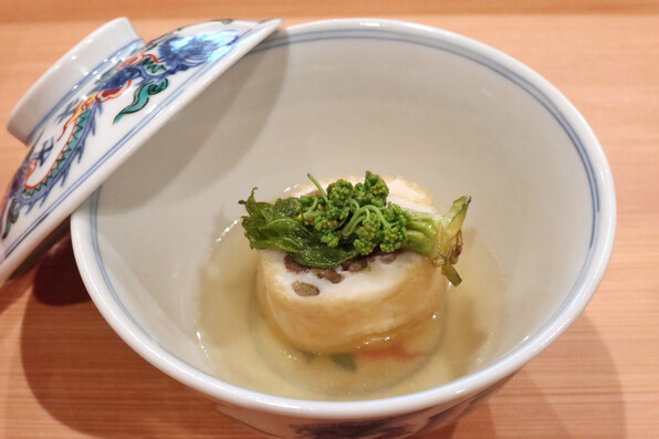 お浸しが、前半は甘草、後半は菜の花とコース中に織り込まれ、流れにリズムを作っていました。