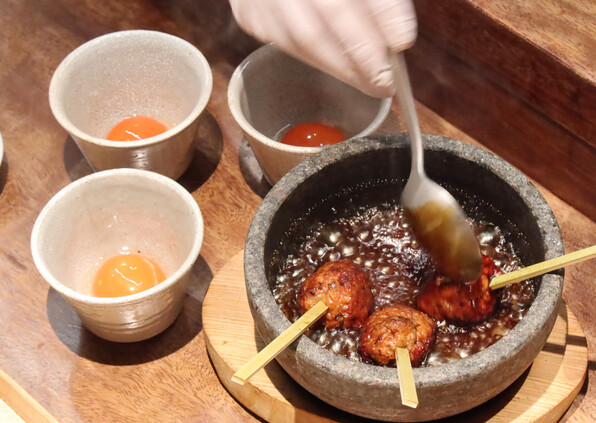 ●信州シャモのもも肉に、干し椎茸を合わせたおこわ。