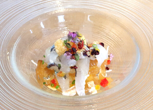 ●料理に寄るとこう。テリーヌだけでも幸せなのに、そこにかつおで季節の鮮烈な味を添えてくださいました。