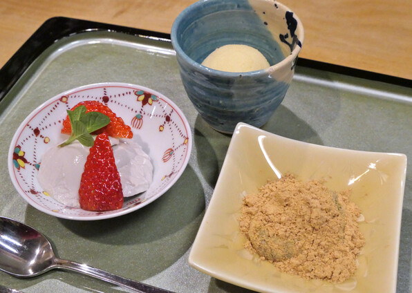 これは形を保つだけの硬さですが、しかし食べるとするりとなめらかで食後にふさわしい甘味。あーもうこれ定番にしてください<(_ _)>