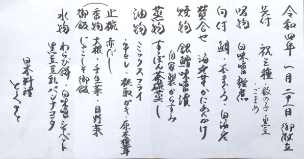 ■ 全国100万人の読者の皆さま、クラブエリー@「日本料理 研野」さん1月の報告でございます。
