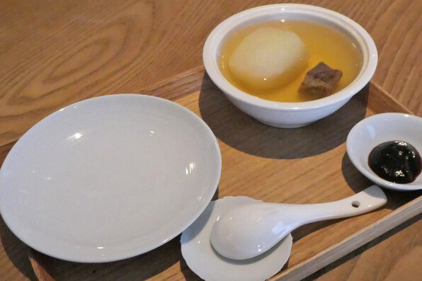 ●最後に澄んだスープの麺を少し。カリマンタン島の生胡椒がひと粒あしらわれ、これがいいアクセントです。