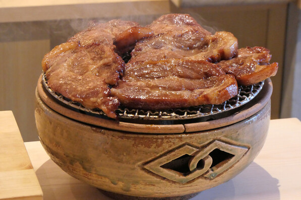 ●焼き物はいつものチャーシュー。味噌床に漬けて焼いたもので、ものすごく味がしみていて旨みたっぷりです。合わされるものが毎月替わって、今月は白菜。少し甘酢漬けみたいな感じで粋な風味を添えていました。