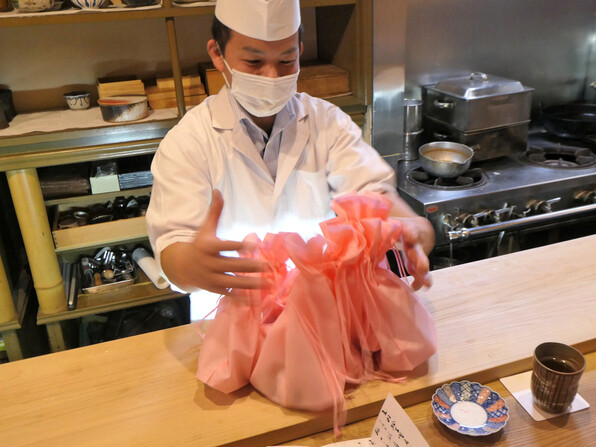 ●そして次、この柚子釜の酢の物も、丸いお盆に柚子を並べて盛り込んでいる最中からかわいいなあと思い、