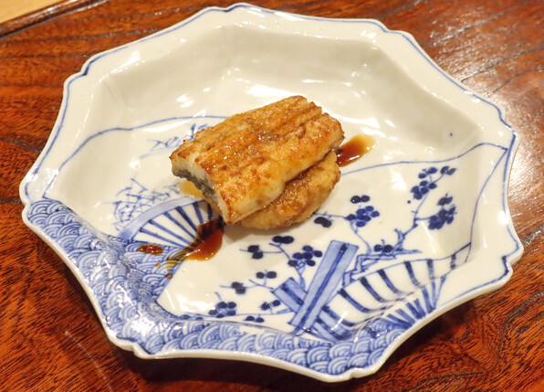 ●松茸を射込みにした蓮根餅を揚げたものに、上に煮鰻。