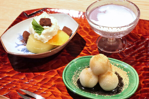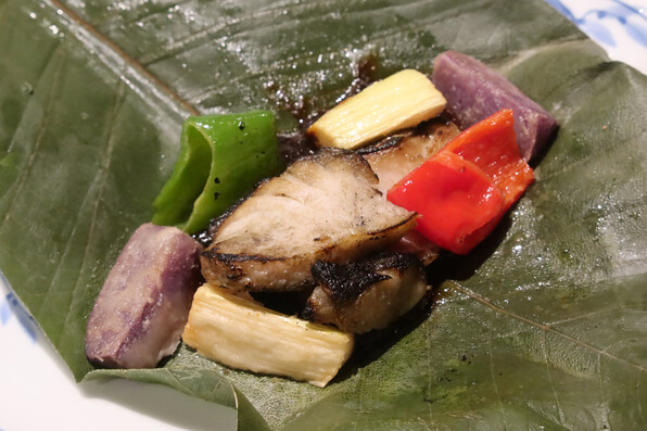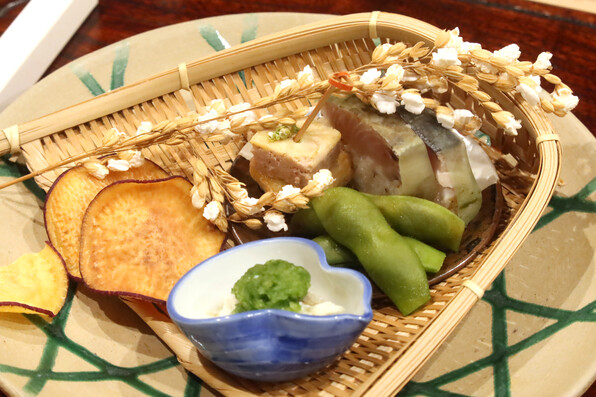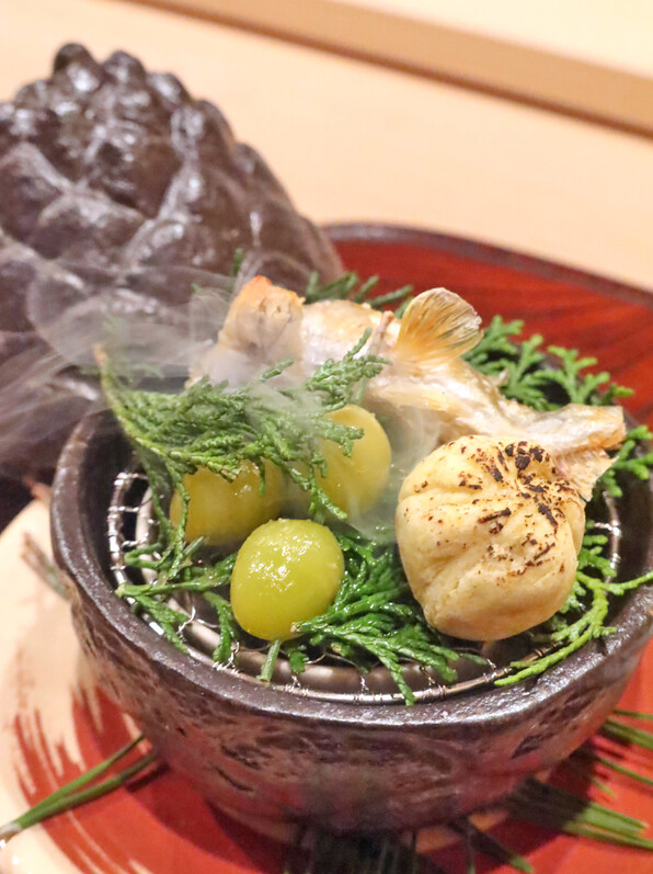 ●子持ち鮎、銀杏(熊本)、栗茶巾(愛媛の栗をシロップ煮して裏ごしして茶巾にまとめて炙ったもの)。