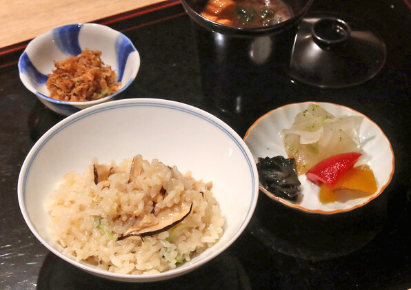 ●これはクラブエリーの時のぐじ頭焼きと原木舞茸の炊き込みご飯。