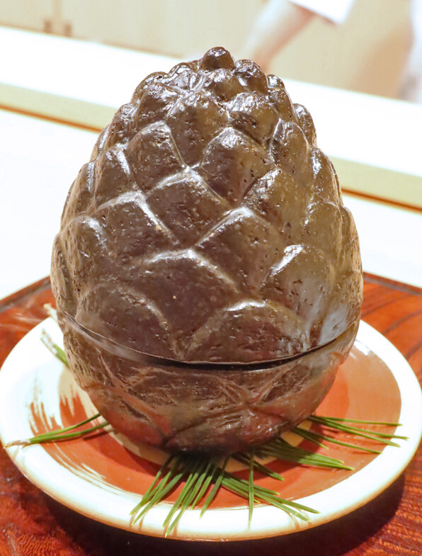 ●松ぼっくりの形の器は中川一辺陶さん作のものでえ、開けるとふわああと煙が立ちのぼり、炭で焼かれたひのきの葉の香りがします。