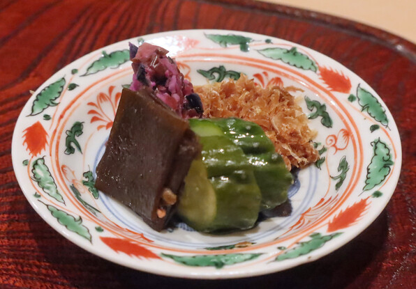 ●お漬物もまたお手間入りで、昆布と鰹節はおだしを取った後のものを佃煮にしたということ。