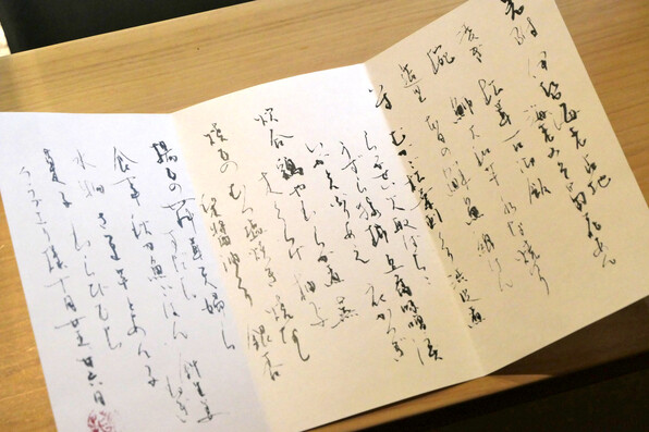 ●毎回、店主の寺田慎太郎さんの手書きの和歌が添えられるのが何ともゆかしいことです。