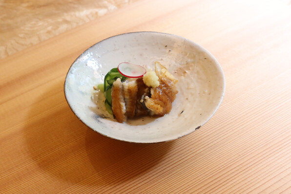 先日のおうどんいただいたのと同じおだしがひたひたかけられて供されました・・・なんと斬新なこと\(^o^)/