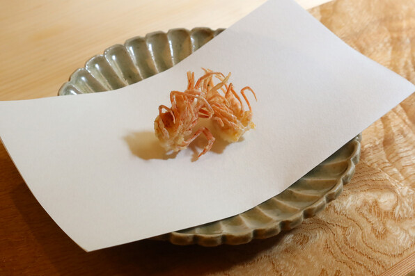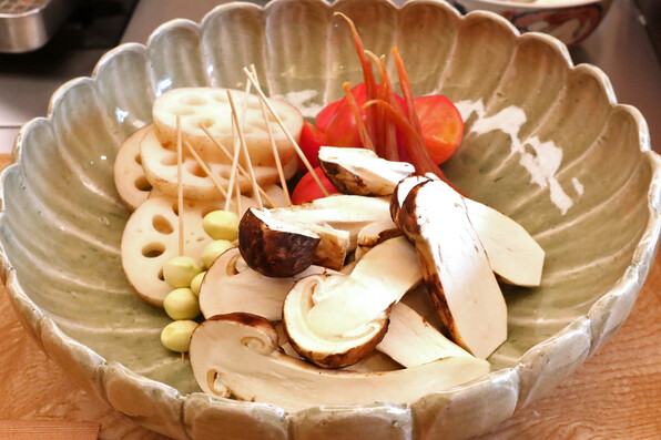 きのこたっぷりです。花穂紫蘇と柚子。パルミジャーノ。