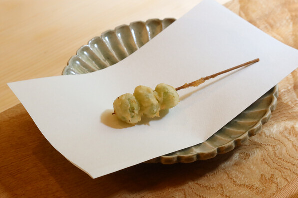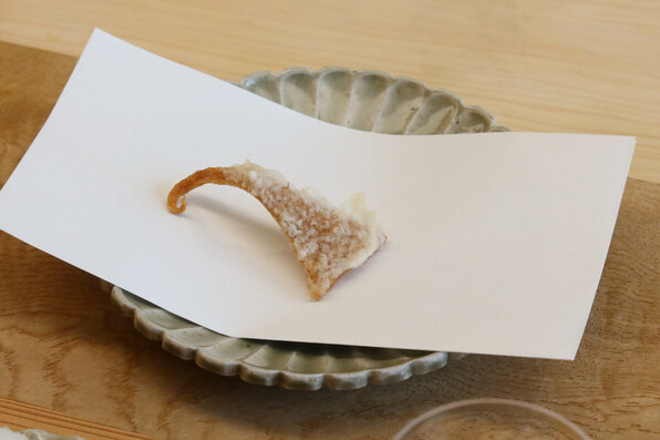 添えられているのは生姜のアイスクリームです。これがまた粋な味で、パリ二寧坂の香味を引き立てました。
