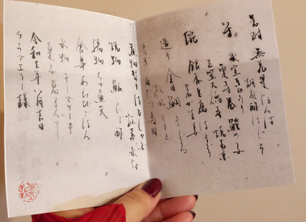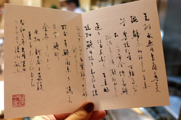 店主の寺田慎太郎さんの直筆です。本当にきれいにお書きになります。