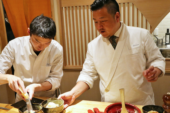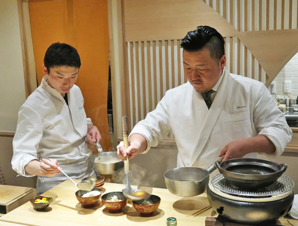 ●このお鍋を実現してくれた、料理長の横井裕史さんがお手本を示してくれます。