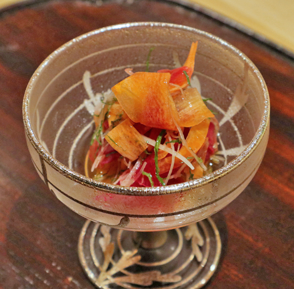 ●「富小路 やま岸」さんの二号店として昨秋二条駅近くにオープンされた「二条 やま岸」さん、広々とした趣味のいい店内でお鍋をメインとしたコース料理をいただけて、開店以来大好評のお店です。