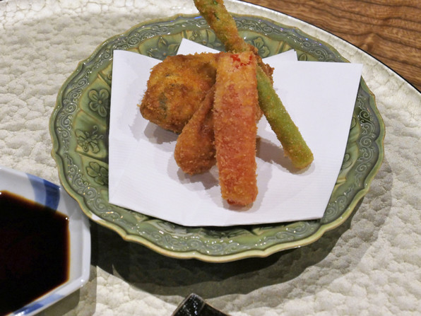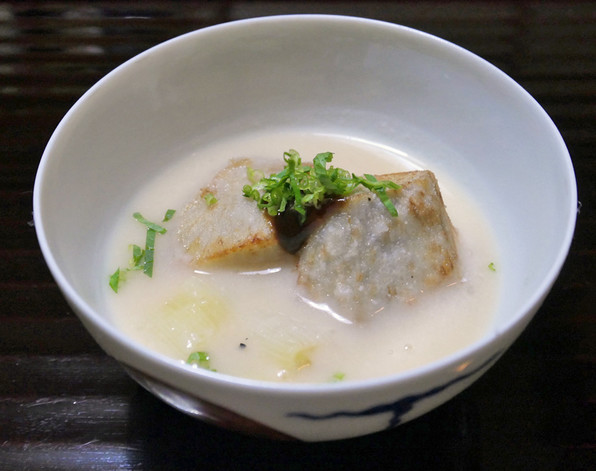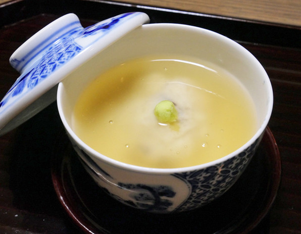 ●温まるすっぽんスープと牡蠣フライでスタート。