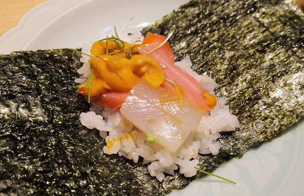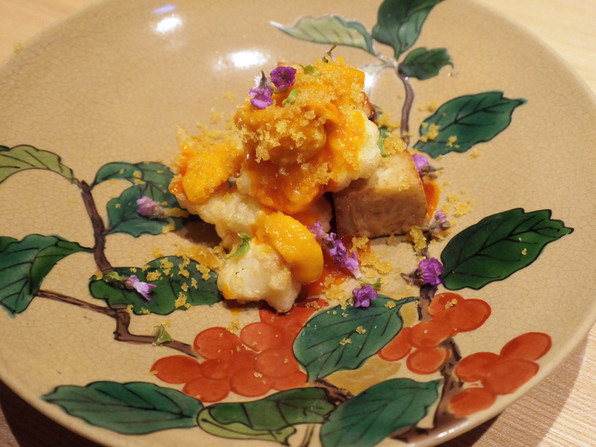 ●雲丹、帆立貝柱、カヴィアがのった冷製パスタでした。贅沢な味。