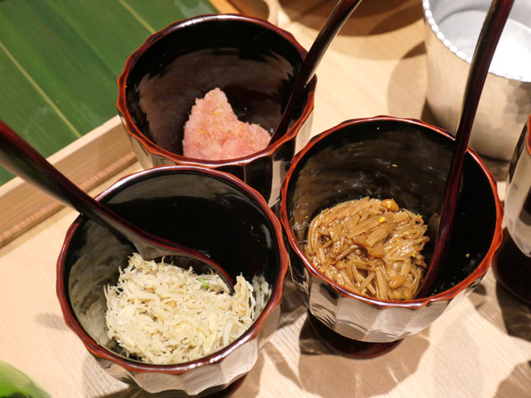 ●松葉蟹の飯蒸し、添えられたフィンガーライムをのせよと。