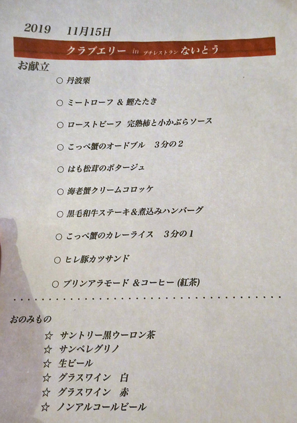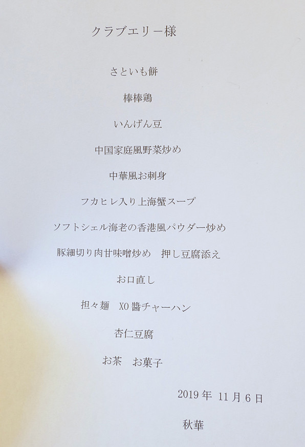 ●11月6日(水)のクラブエリーは、北白川の「秋華」さんにお世話になりました。