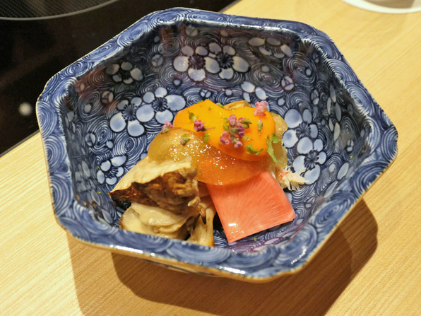 今回初めて、いつもの素材直球の夜料理ではなく昼のおばんざいを食べさせてもらい、昼コースにおいてはお料理全般、ヴィジュアル重視で「きれいめ」をめざしていることがわかっておもしろかったのでした。