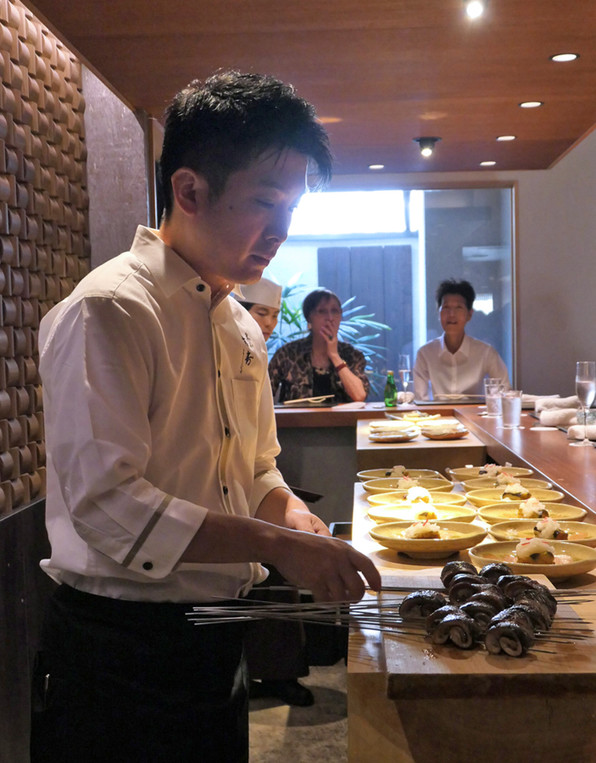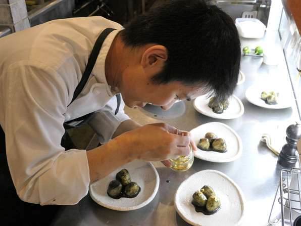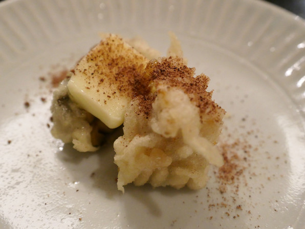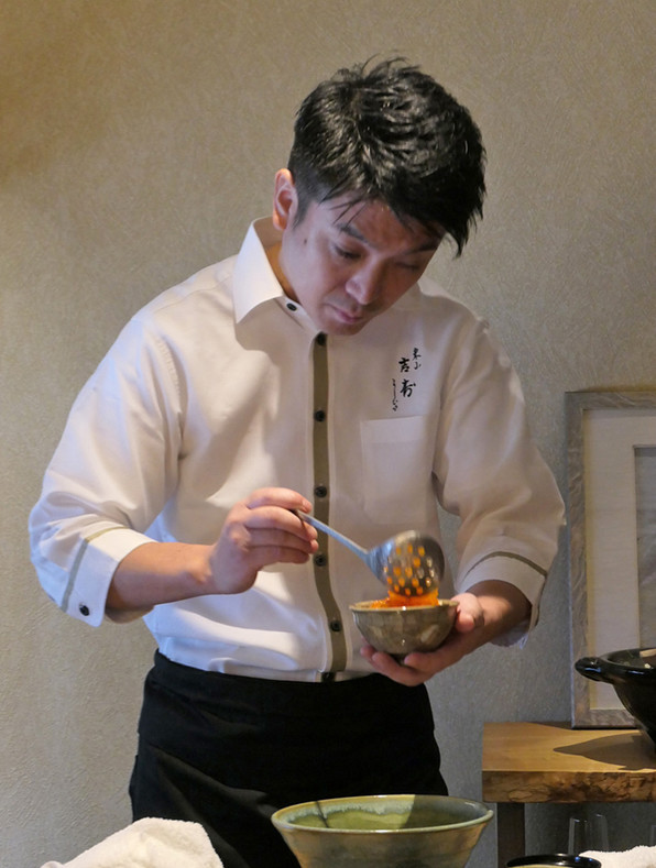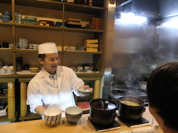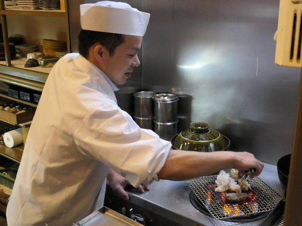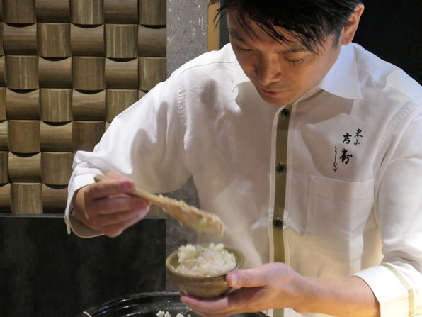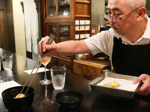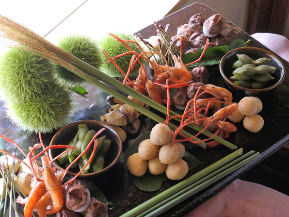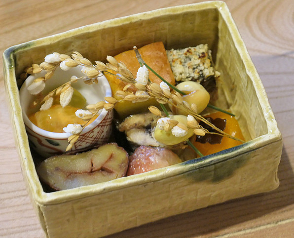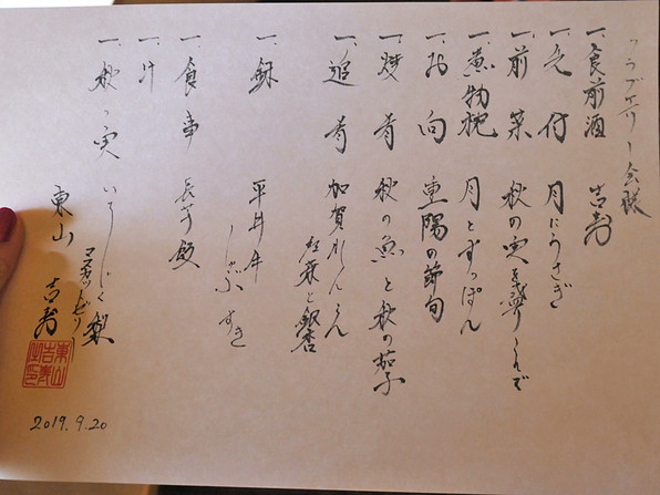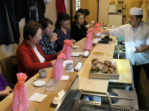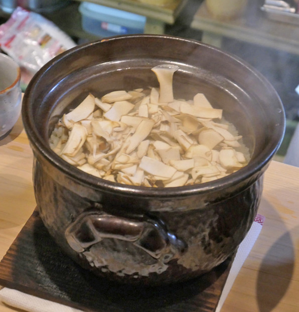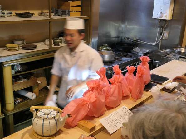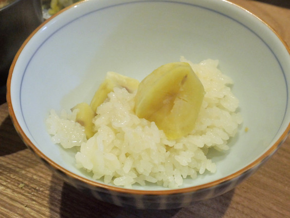 秋のおいしいものをみっちり盛り込んでいただいたコースでした。ご飯は栗ご飯と松茸ご飯。おみやげに両方のご飯をひとつにした大きなおにぎり。いちばん早い日で、12時スタートで、13時35分に全部終わっていました。洗い物も片付いていた( ̄○ ̄;)( ̄○ ̄;) 確かに食べるスピードもすさまじい高速モードなんだけど、しかしこちら8名、店主さんひとりなのに、一瞬も遅れをとらずばんばん料理出してくるのがすごい。手品を見ているみたいです。追い松茸もご飯のおかわりも何度もしてくださいました。